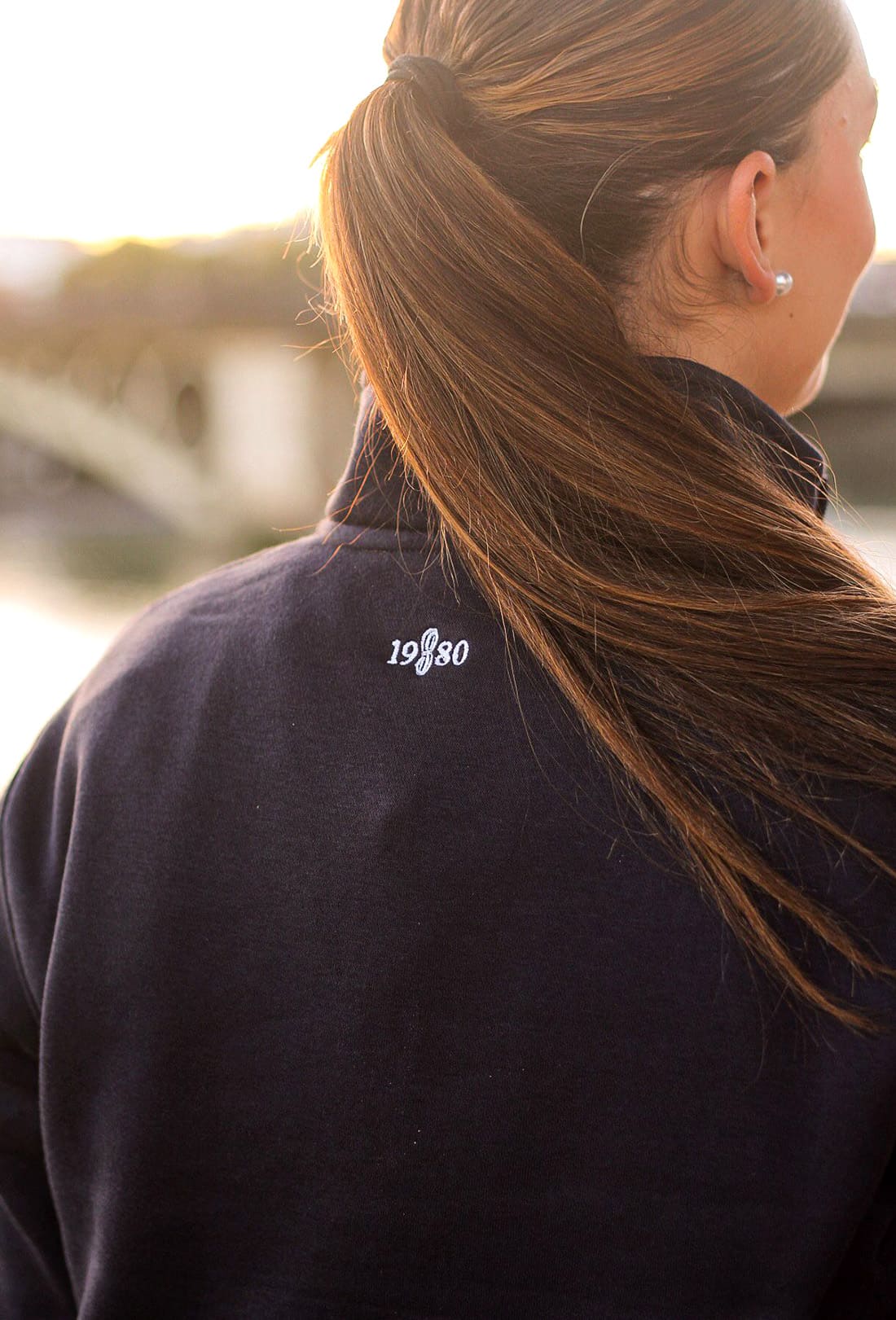Su diseño unisex, con media cremallera al tono y cuello alto, aporta un aire clásico y elegante, ideal tanto para los meses más frescos como para combinarla fácilmente en cualquier momento del día. Una sudadera cómoda para el uso diario, pero con presencia suficiente para llevarla con orgullo en actos, ensayos o encuentros relacionados con la Agrupación.